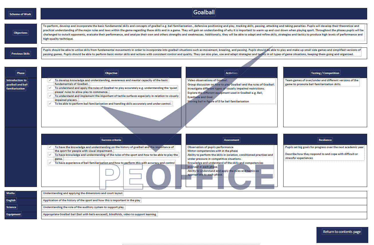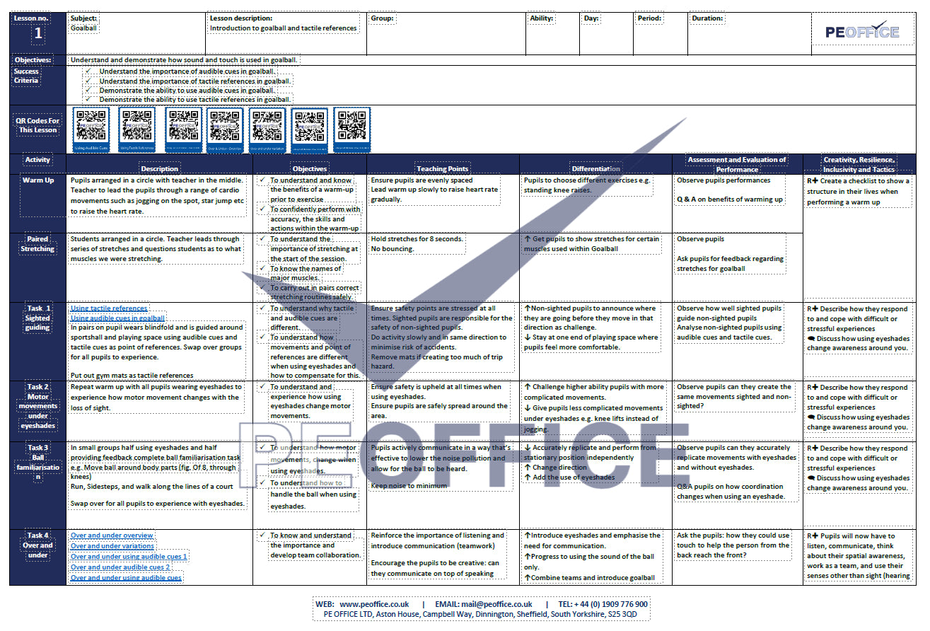 Written and developed in partnership with GoalballUK there are lesson plans, schemes of work and QR codes leading you to videos with professional players to see the tasks in action.
