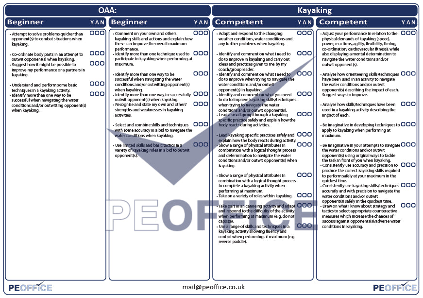 OAA Kayaking Assessment Sheet