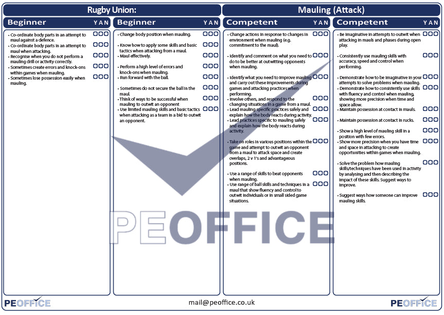 Rugby Union Mauling Attack Assessment Sheet
