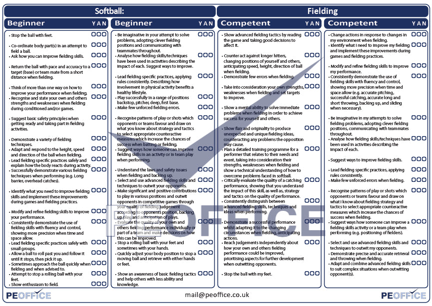 Softball Fielding Assessment Sheet