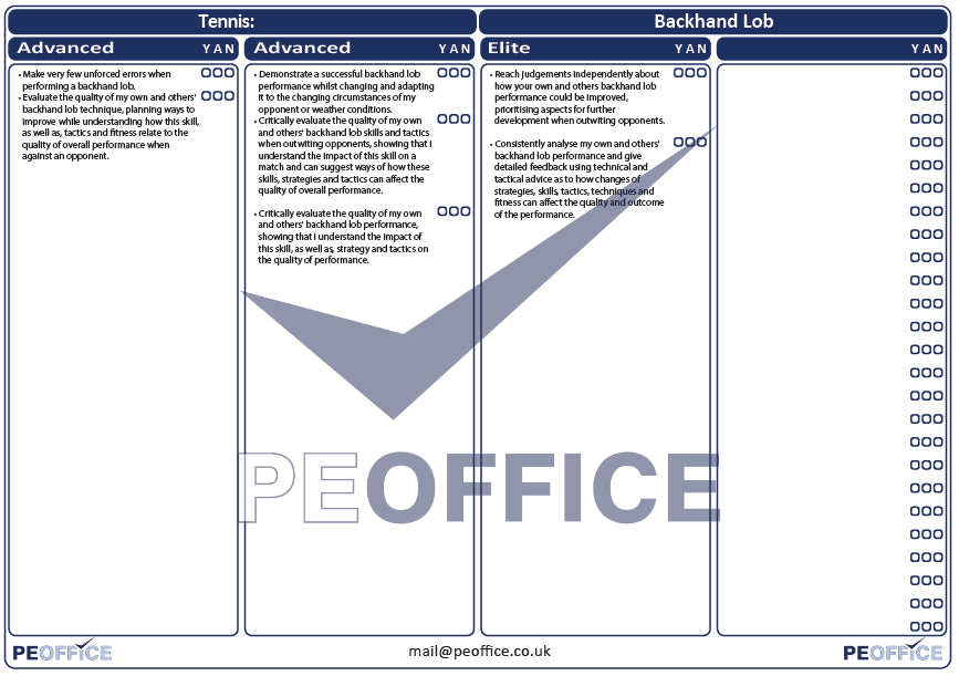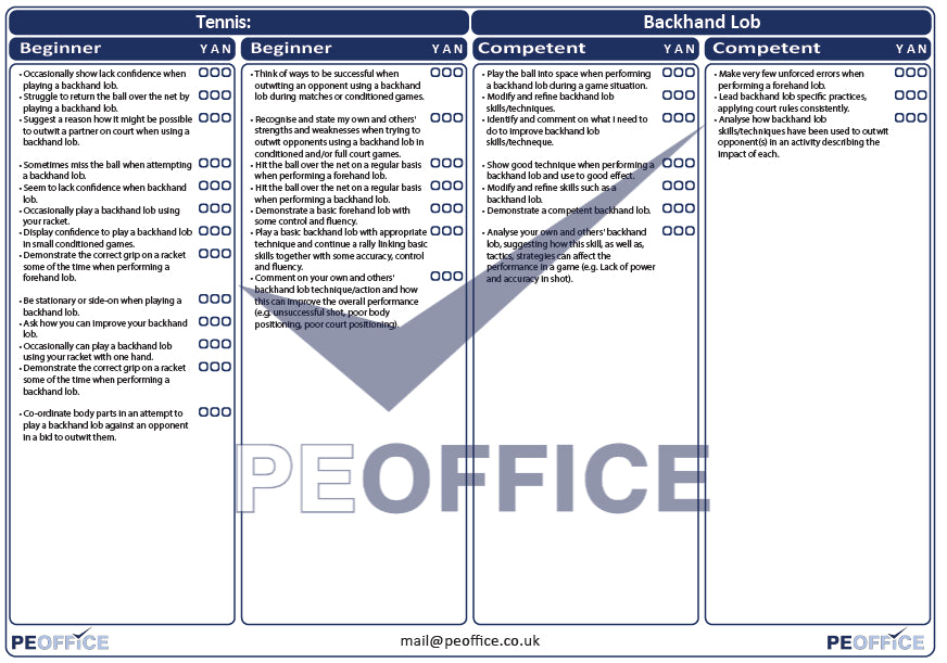 Tennis Backhand Lob Assessment Sheet